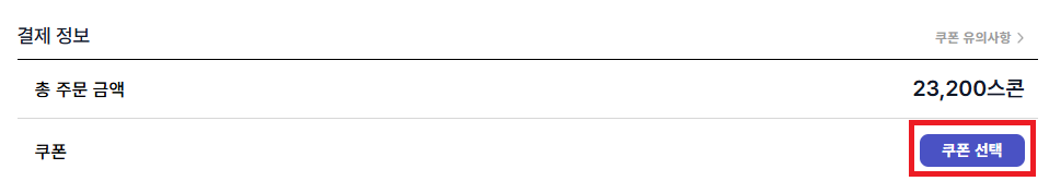 ① 결제 페이지에서 쿠폰 적용 버튼을 선택해 주세요.