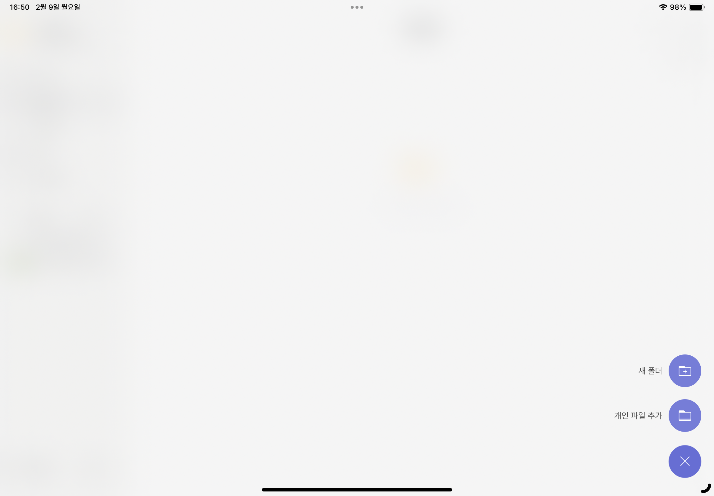 - 새폴더 : 개인파일 페이지에 새 폴더를 만들 수 있습니다.